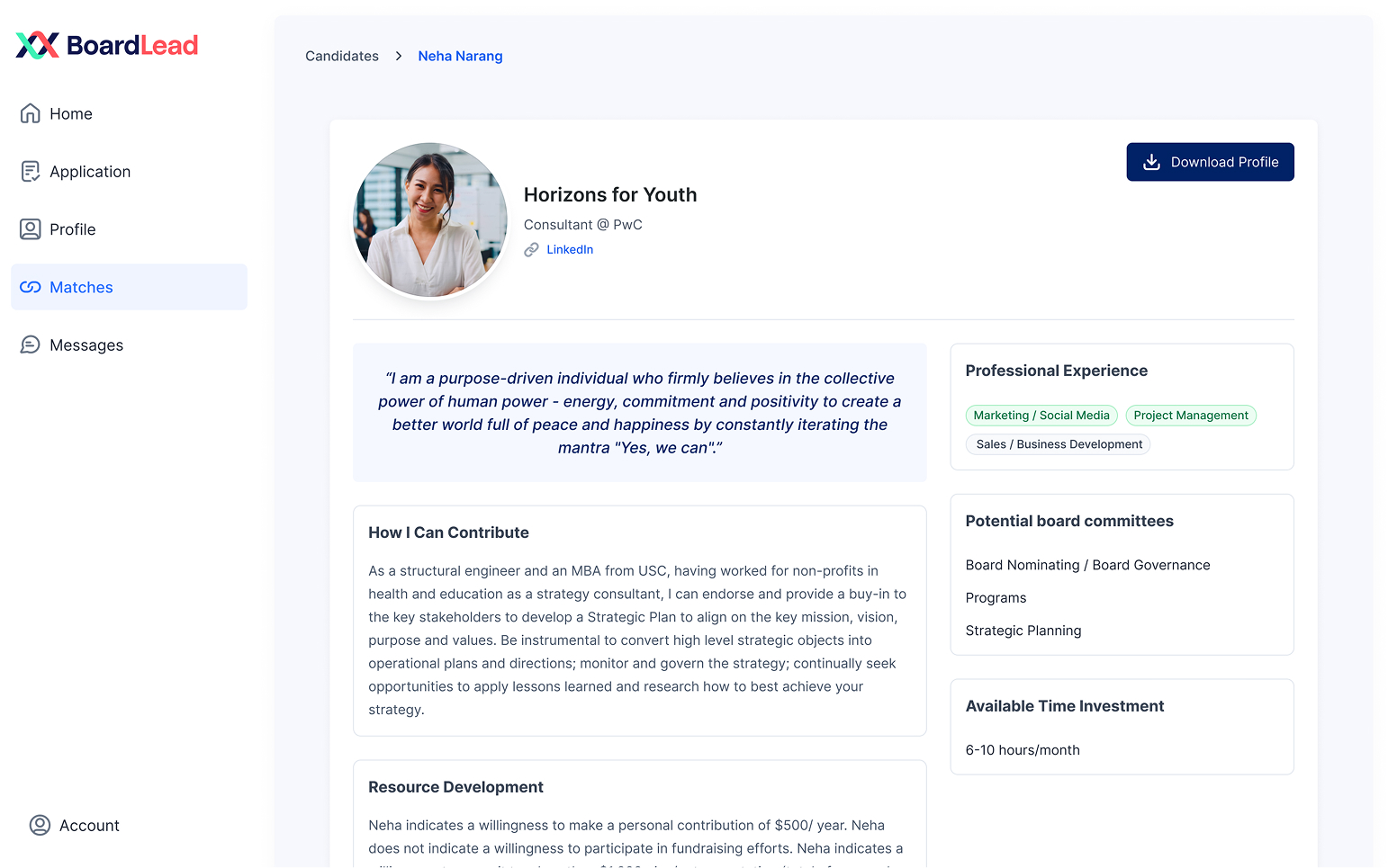 BoardLead, the flagship platform of Cause Strategy Partners, connects corporate professionals with mission-aligned nonprofits seeking board members. The platform powers every stage of the process from candidate applications and matching to onboarding and reporting for nonprofits, candidates, corporate partners, and administrators.
