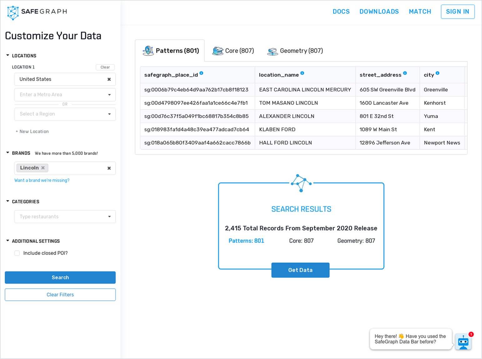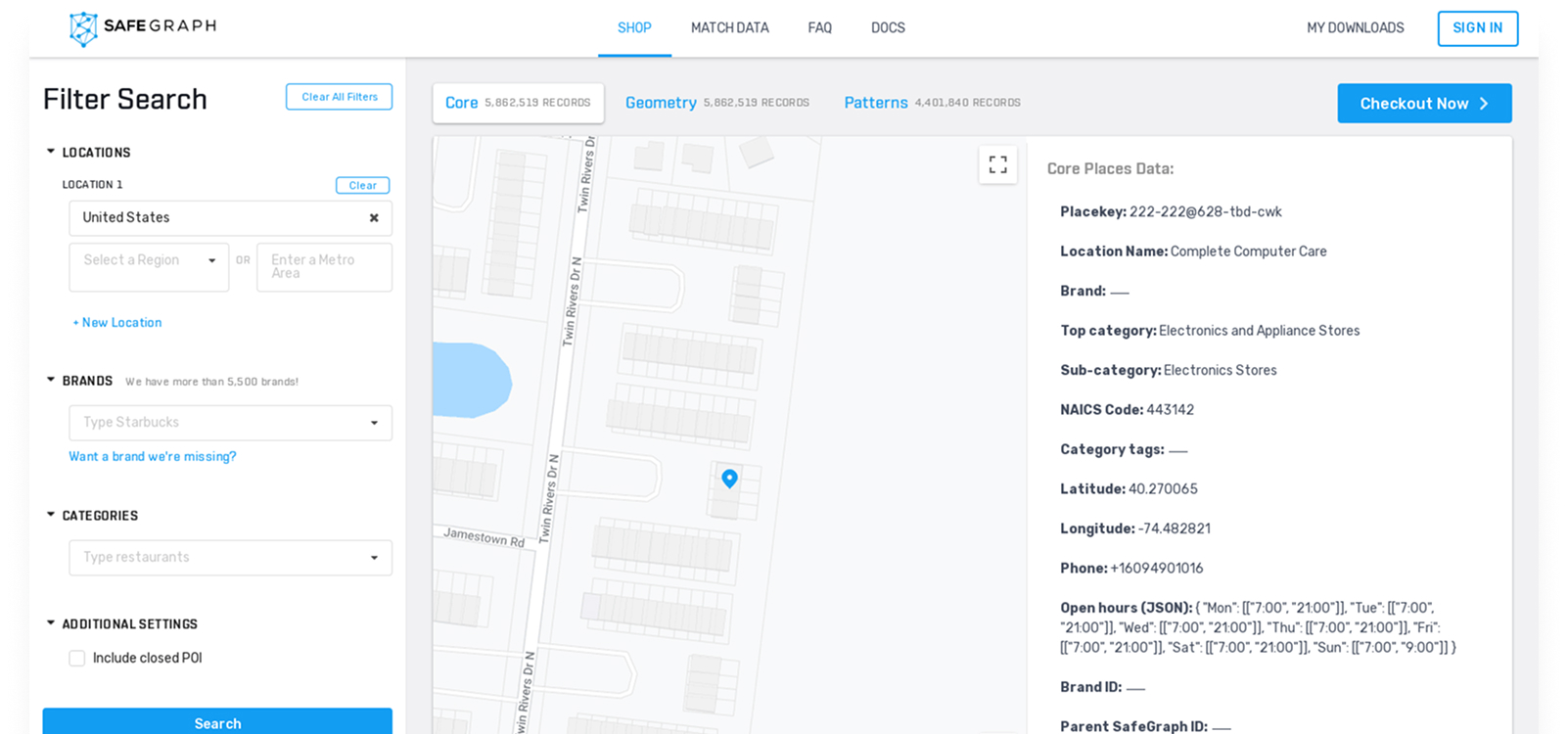 In keeping with their mission, SafeGraph desired to go to market with a self-serve Data Shop that lets prospective customers preview datasets and buy exactly the records they need, within an easy to use platform.